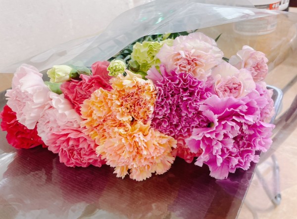 大きな箱でカーネーションの切り花が届いたのはI様