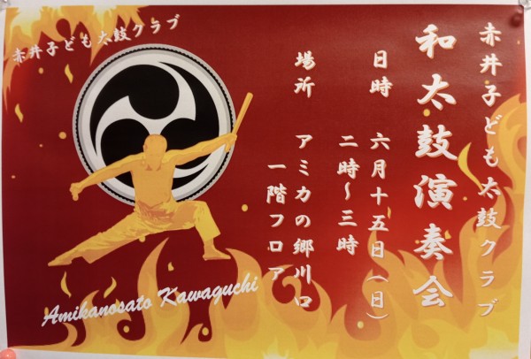 6月15日(日) 赤井子ども太鼓クラブ 元気な子ども達が力強い演奏で皆様を楽しませてくれます ぜひ遊びに来てください (*^^*) 15日が楽しみですね。