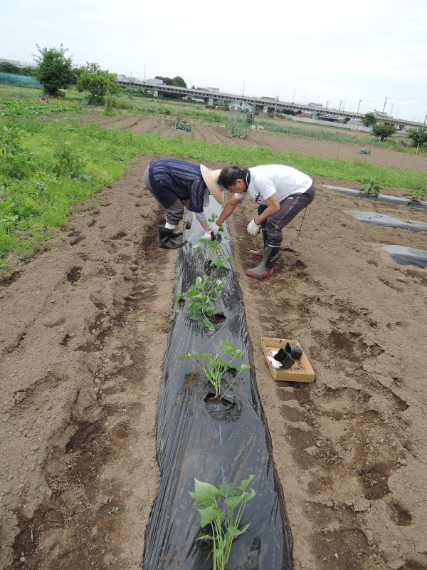 施設裏の畑にサツマイモ植えま~す☆