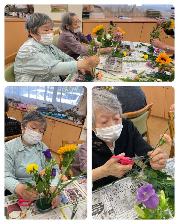 20日は毎月のイベント「フラワーアレンジメント」がありました。