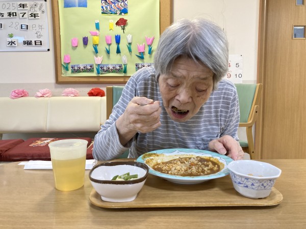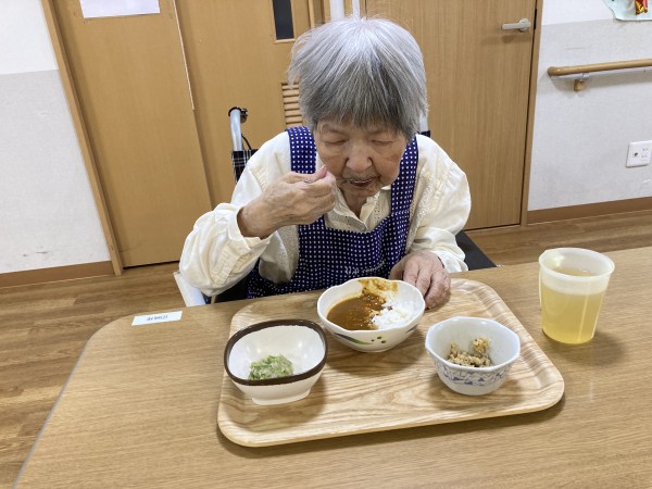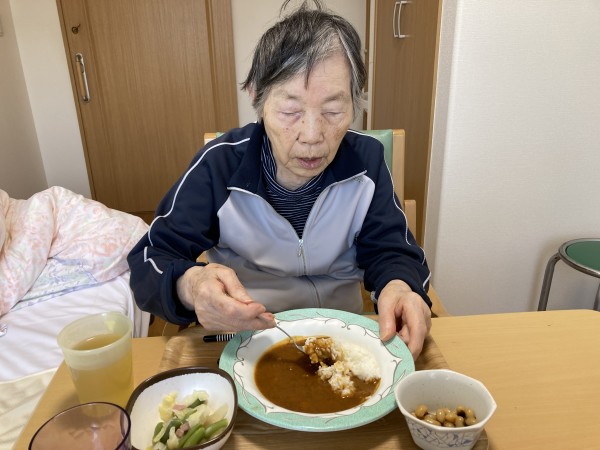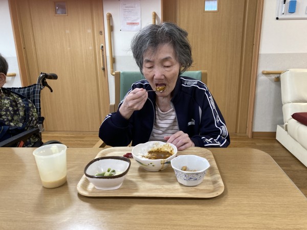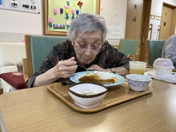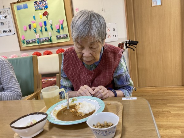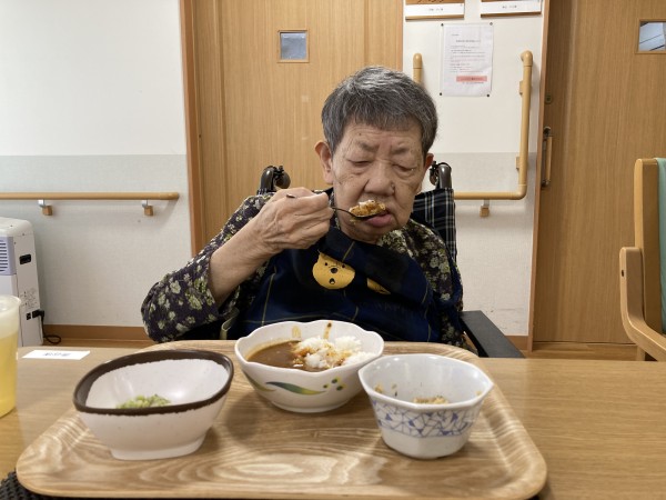 この日はカレーでした。なかには好物の方もいらっしゃり毎回カレーを楽しみにされています。