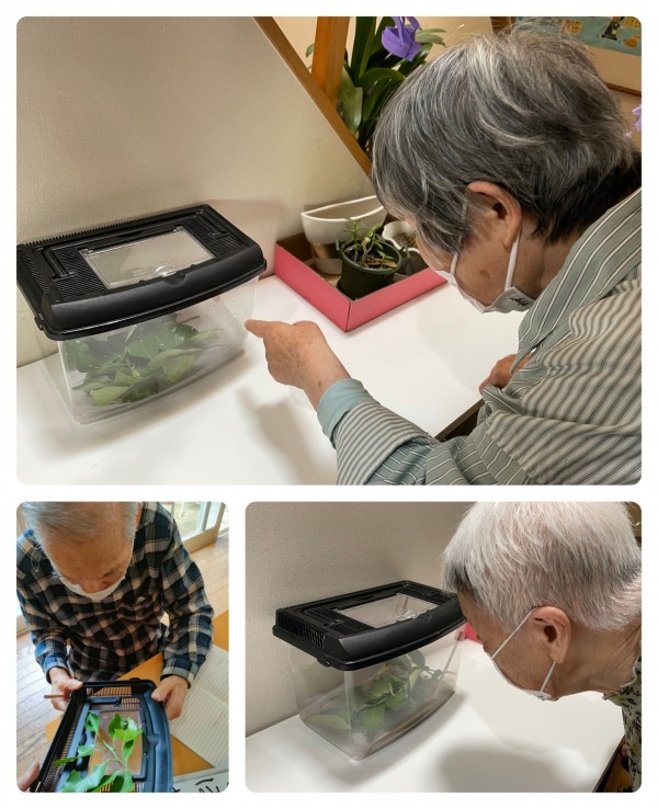 デイの玄関の柚子の木にアゲハ蝶が卵を産み付けます。