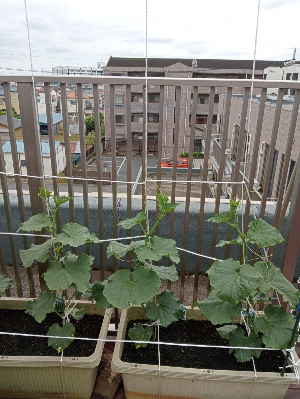 ↑こちらはきゅうりの苗です。一週間でこんなに大きくなりました↑
