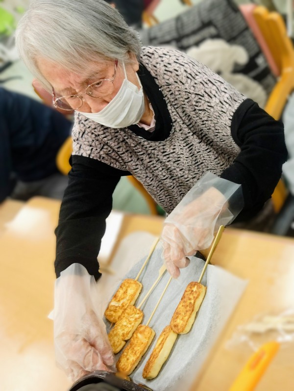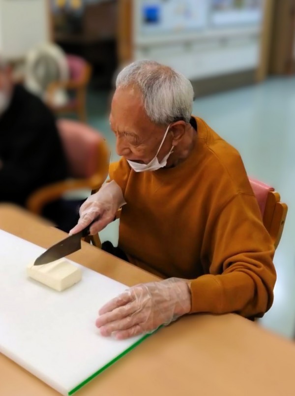 職員もご利用者様も?を浮かべつつ出来るだけ崩れないよう慎重に切りました。