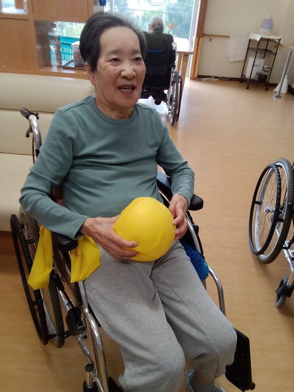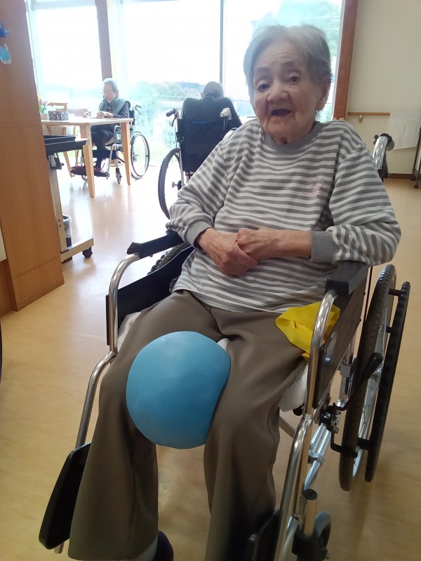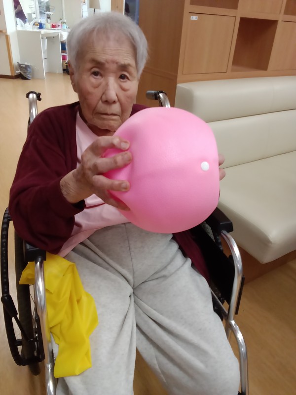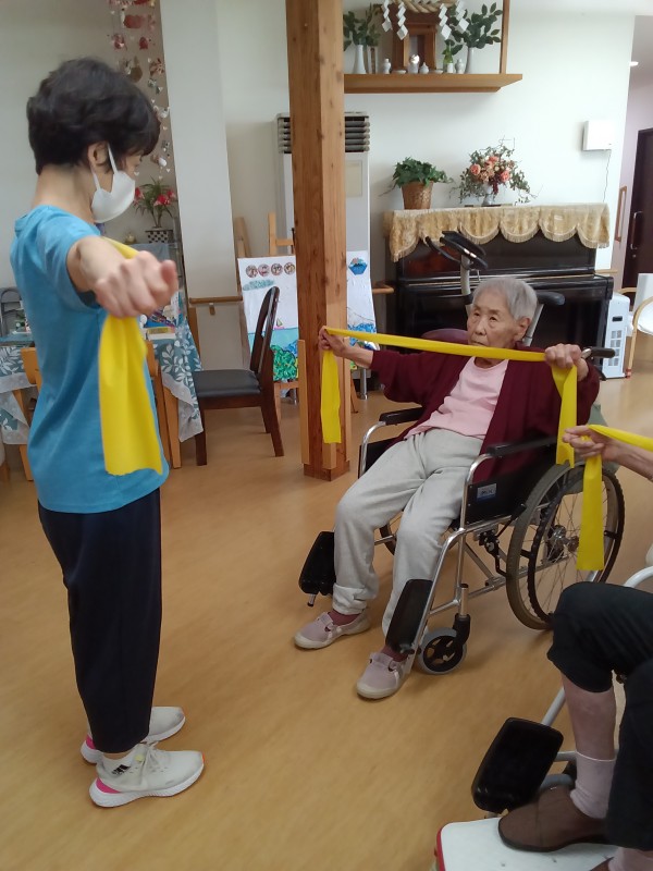 ゴムのチューブを使って、筋力強化(^_^)/~です。