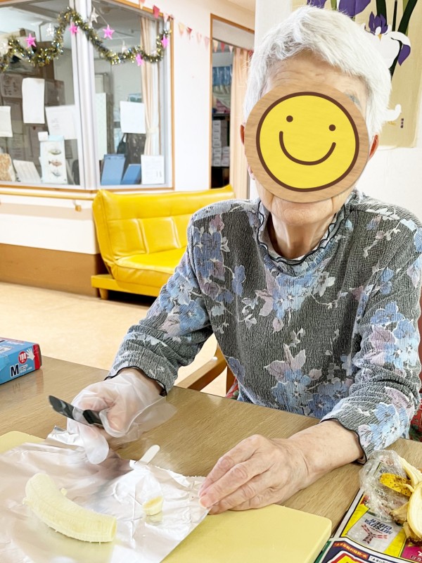 5月のおやつレクリエーションでは、「豆腐とバナナを使ったホットケーキ」をご利用者様と一緒に作りました。