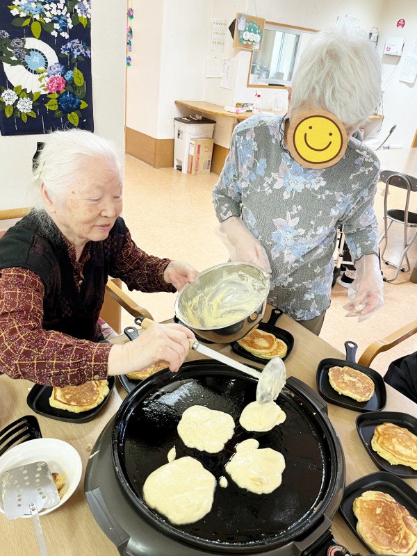 グループホームみんなの家大宮三橋 5月のおやつレクリエーション~ふんわり豆腐バナナホットケーキ~