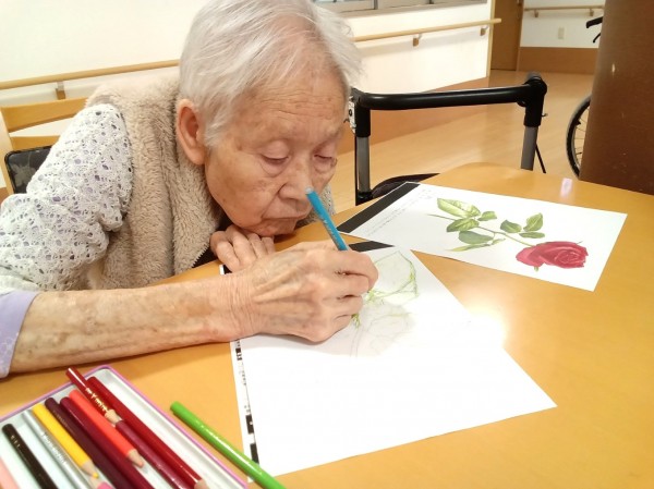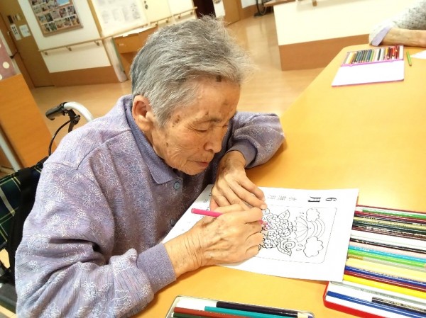 先日フロアで入居者様が塗り絵をしていたので、その様子をブログ担当のだて子がご紹介いたします(*^^*)