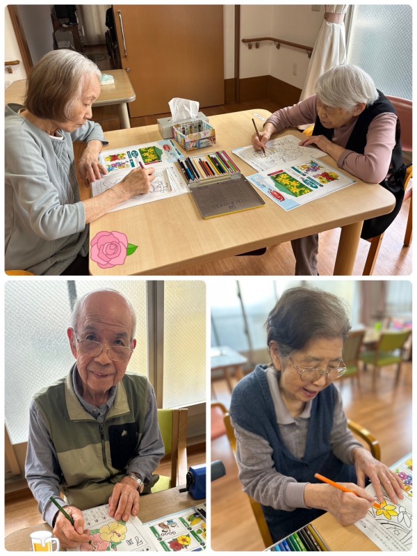 『季節の塗り絵』に皆様談笑されながら、取り組まれていました(๑˃̵ᴗ˂̵)どの作品も素敵ですね♬