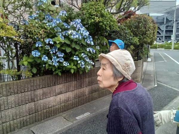 初めて見る種類の紫陽花にも「珍しい、初めて見たわね」と喜ばれていました (^0^)