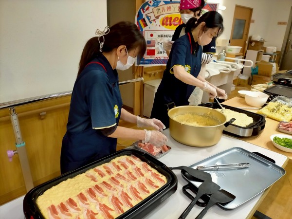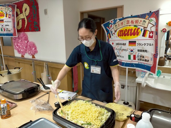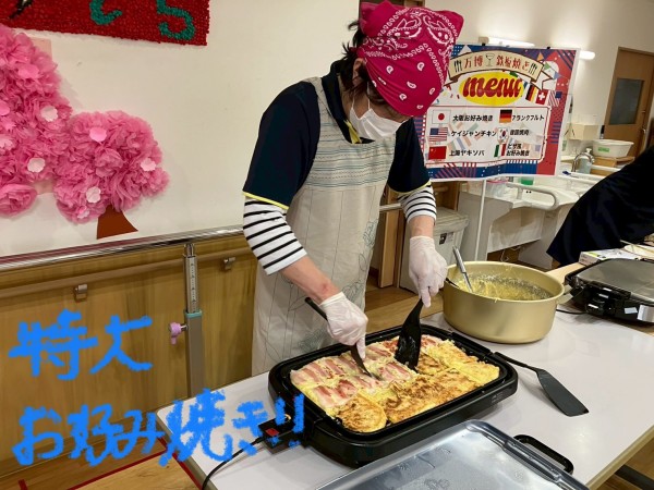 さて、かたくりの里みずほ台では「2025大阪・関西万博」にあやかり、『万博鉄板焼き』を行いました(о´∀`о)