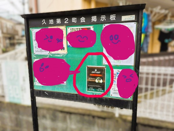 地域の掲示板、すべてにCAFE KUJI のお知らせを掲示してくださいました。