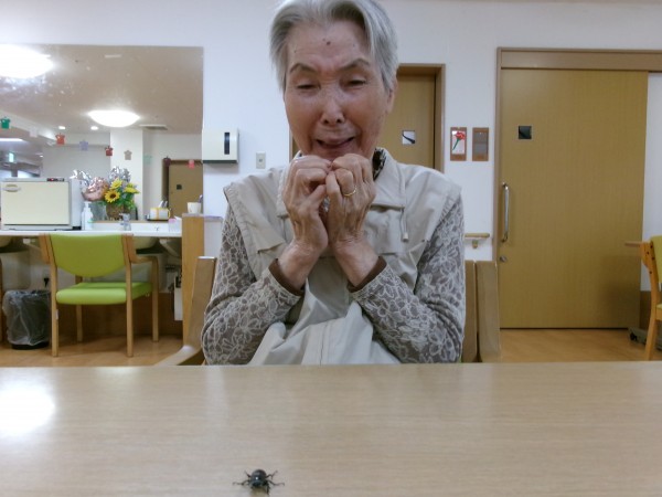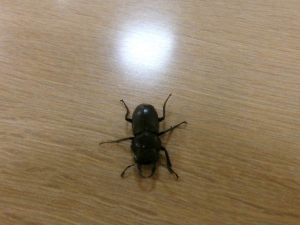 スタッフが「本物?本物?これ本物?」と近づいてみると、なんとコクワガタでした!