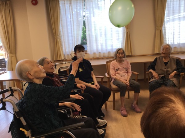 2Fでは麻雀俱楽部が静かなる戦いをしていましたが、1Fでは女性陣が白熱の風船バレーが開催されていました。