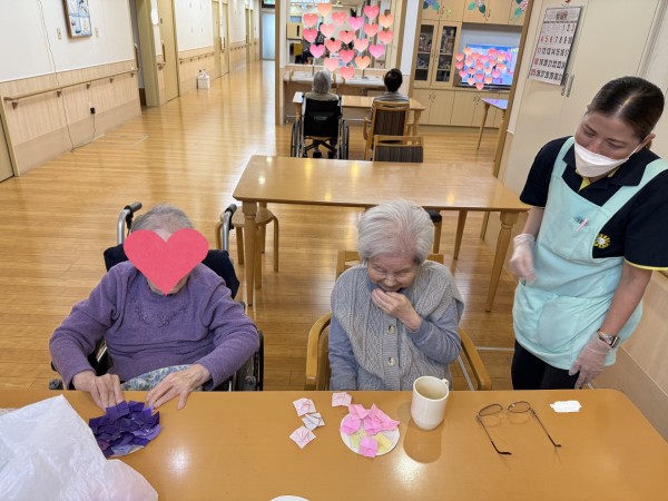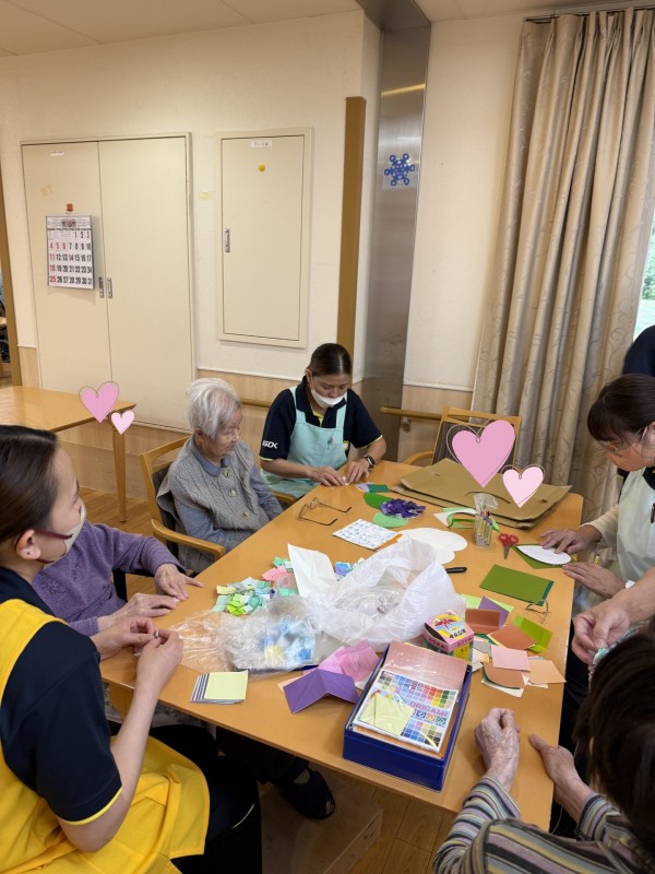 「見えないんだよー」「難しい」と言いながらも細かいお花をたくさん折ってくれました♡