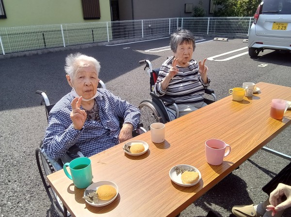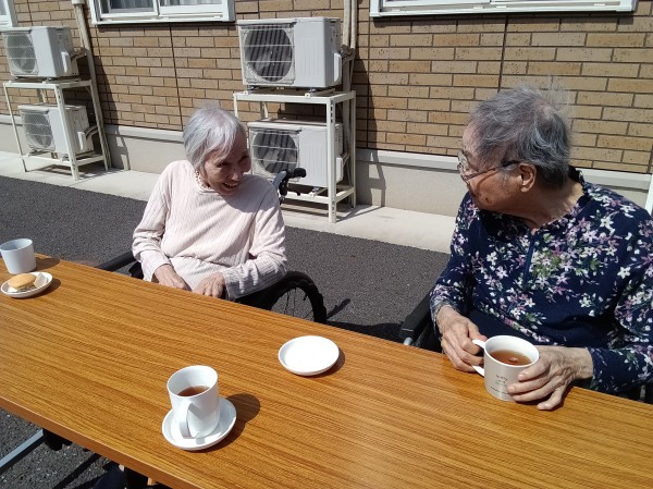 先日は天候が良く、日光浴をしながらおやつタイムにしました。