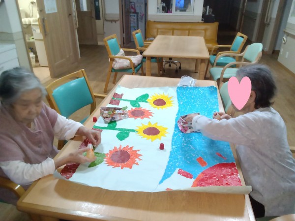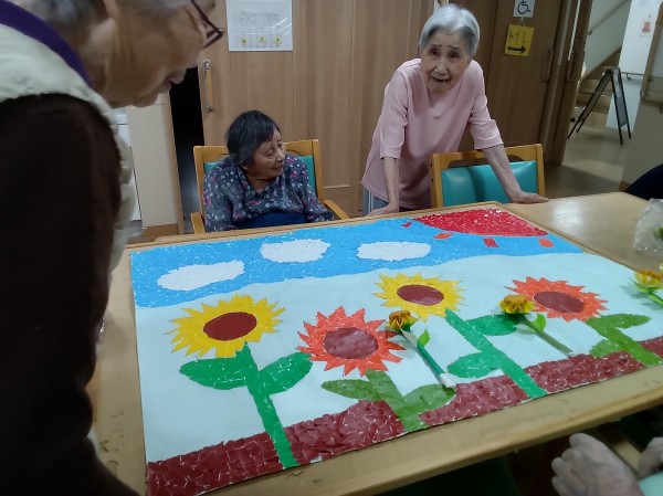 ひまわりの景色を貼り絵で作っていただきました。