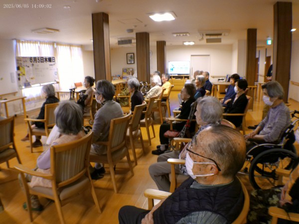 こんにちは(❁´◡`❁)。介護付き有料老人ホームアミカの郷津田沼スッタフブログです╰(*°▽°*)╯いつもご覧いただきありがとうございます。6月5日に岡田先生による毎日ノーア3「腸活プログラム」。快便!!目指してみんなで頑張ろう!(^^)!たまたまTV画面が見にくいのでカーテンを閉め、電気を半分消して、薄暗くしてみたら、癒し効果なのか、なんとなくいい感じです(*^^*) 1Fの利用者様達も楽しみにされており、たくさんの人が参加してくれています。