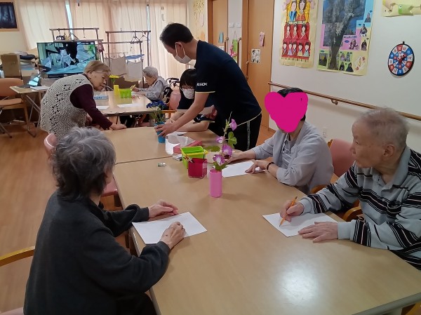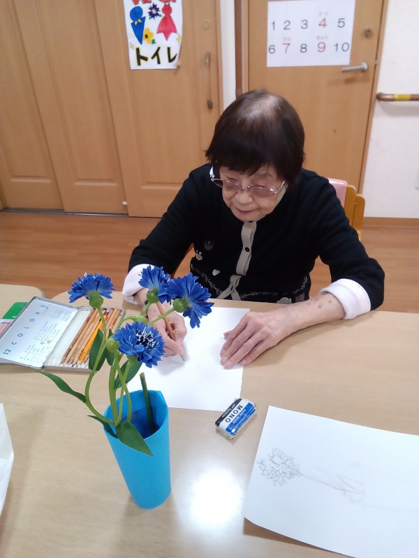 今回は、造花を模写して、色を付けていただくことになりました。(*^▽^*)