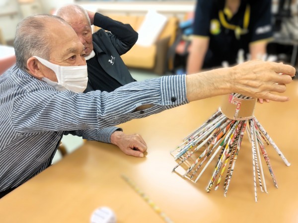 倒れたら最初からを繰り返し、レクリエーション終了時間までに合計何本抜けるかを競っていただきました!