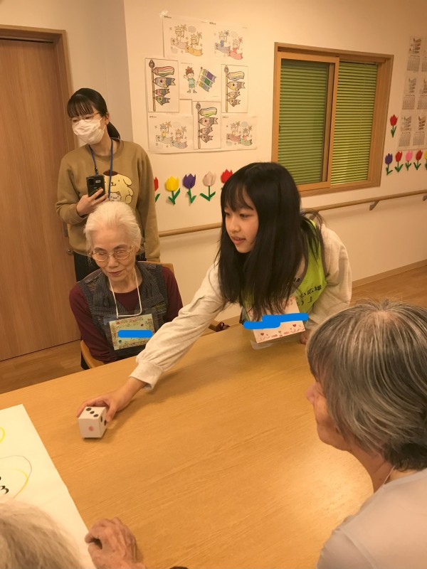 すごろくのコマを児童のみんなが名前を聞いて書いてくださいました!みんな字が上手!それにやさしいお声掛けもできていてうれしい微笑ましい光景です。