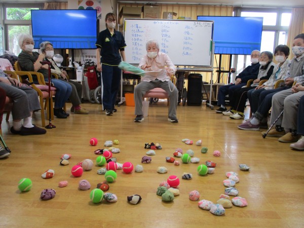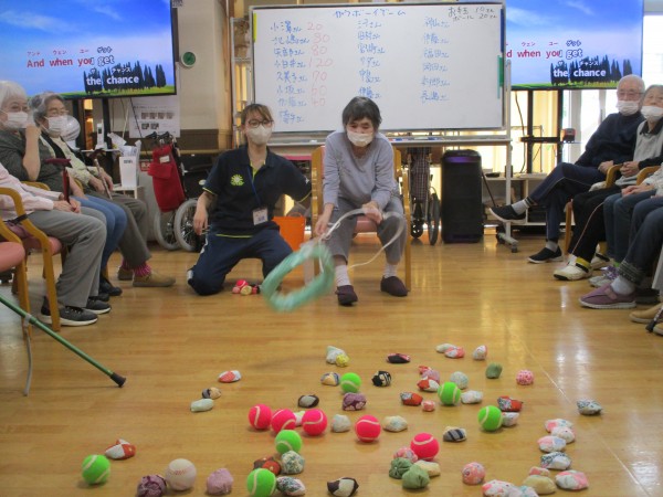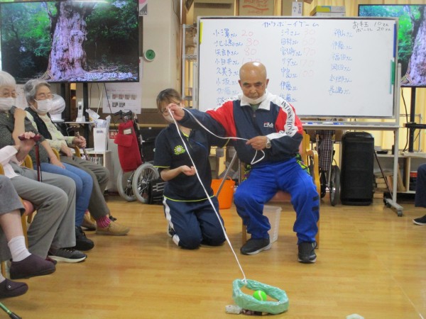 「思ったより難しいわね~」「あと少しだったのに!」といった声が飛び交い、取れた時には大きな拍手と歓声が上がるなど、大盛り上がりのひとときとなりました。腕の動きや集中力も必要な、楽しい脳トレレクでした♪