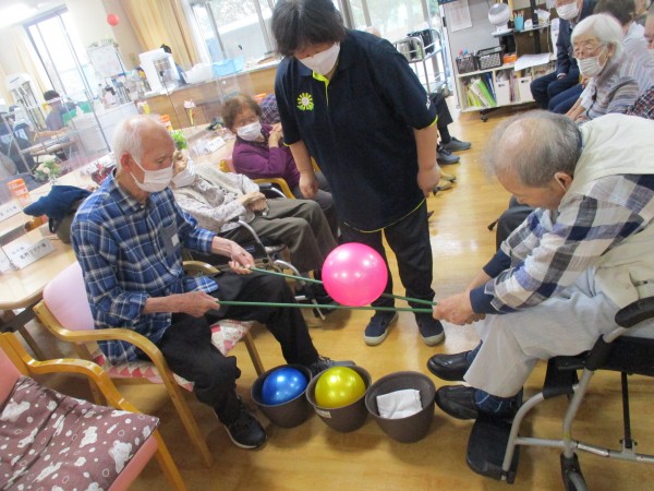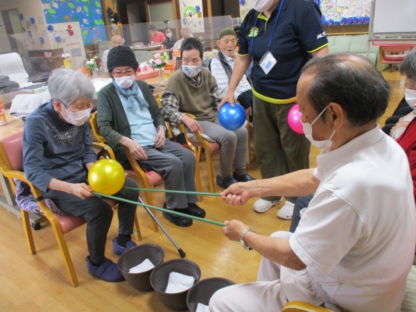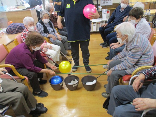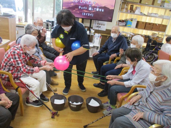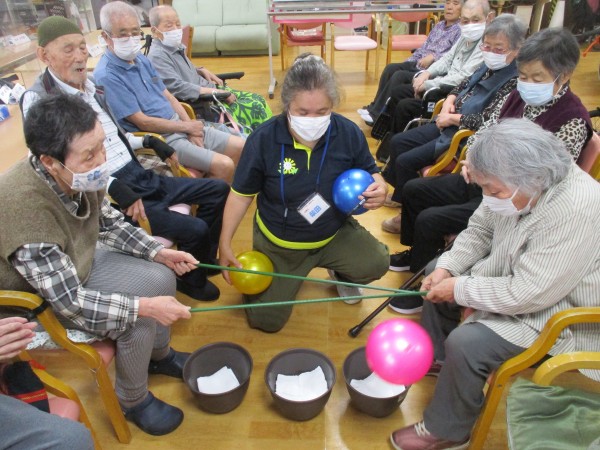 本日午後のレクリエーションは、わくわくゲーム。毎回わくわくするようなゲームを提供しています。