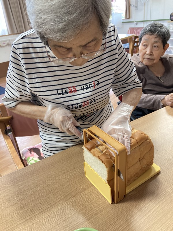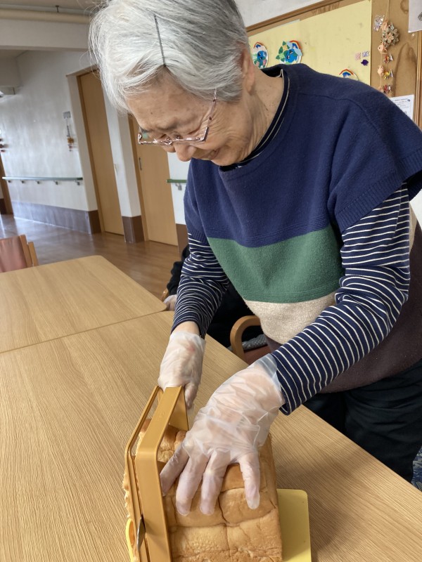 本格的に食パン切り器(というのでしょうか?)を使い、パンを慎重に、丁寧にスライスします!