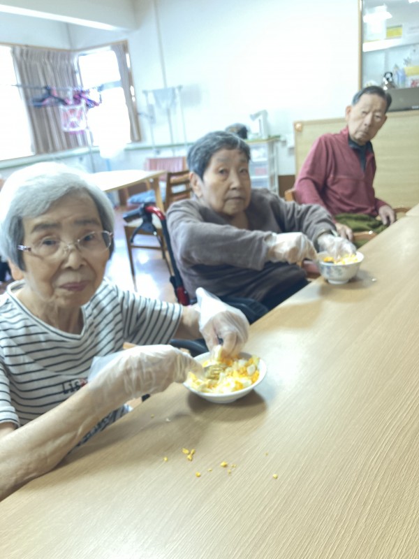 そうです、今日のおやつは皆さんで作る、みんな大好き『卵サンドイッチ』です〜