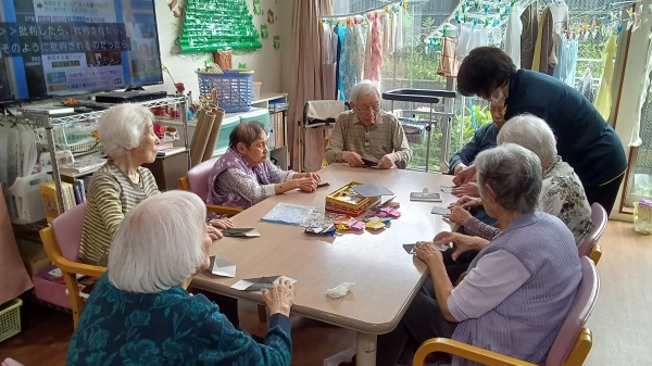 今日は折り紙で季節の飾りつけ作っている様子です(*´▽`*)