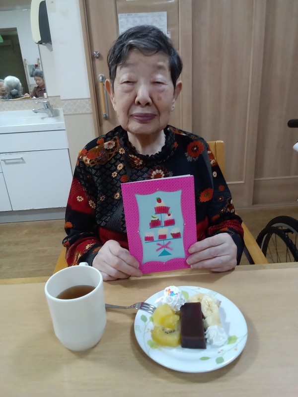誕生日カードと他ご利用者様も一緒に歌でお祝いしました。