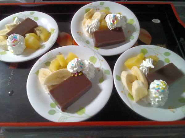 水ようかんとフルーツ盛り合わせを召し上がっていただきました。