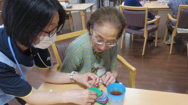 皆さんで協力してたくさんのカラフルな吊るし飾りが出来ました(^^♪