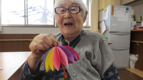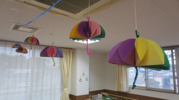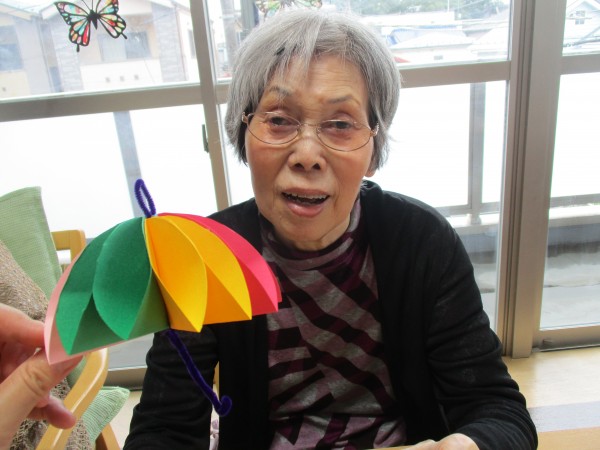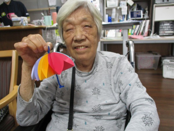 本日は「傘の吊るし飾り制作」レクの続きで、3階、4階フロアの制作の様子をお伝えします('ω')ノ