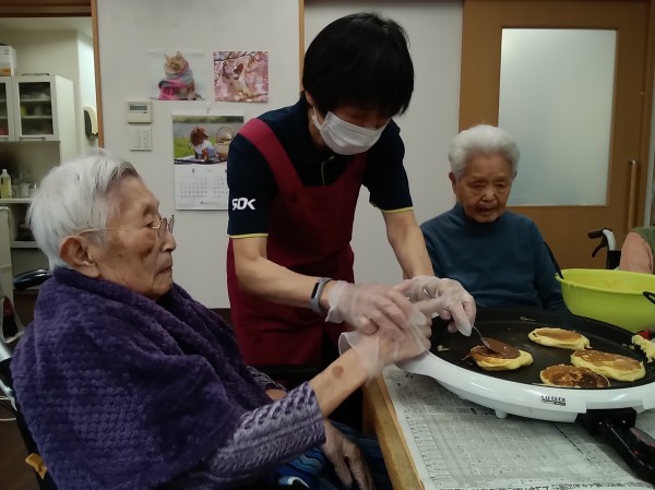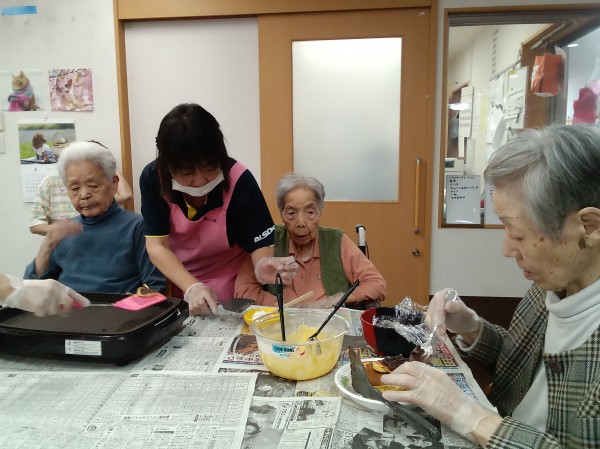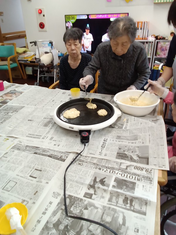 1階のみなさんと作った甘くて美味しいできたてホヤホヤどら焼き(^^)