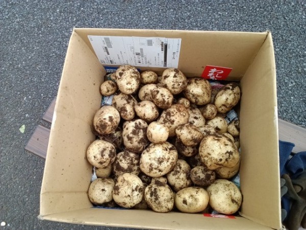 少しだけ止んだ間に、ジャガイモの収穫を行いました(^^)