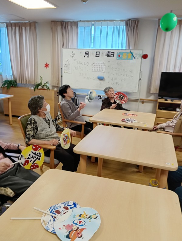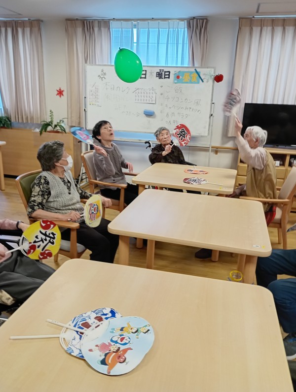 仰いで飛ばすのはいい腕や手首の運動にもなりますね。かなり長い間、風船を落とさずに楽しまれていました。