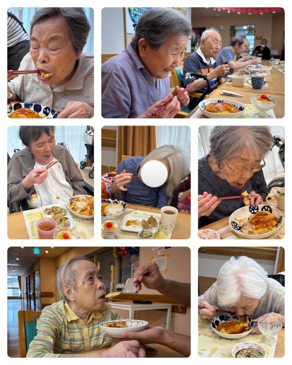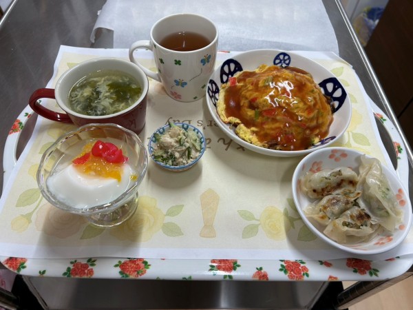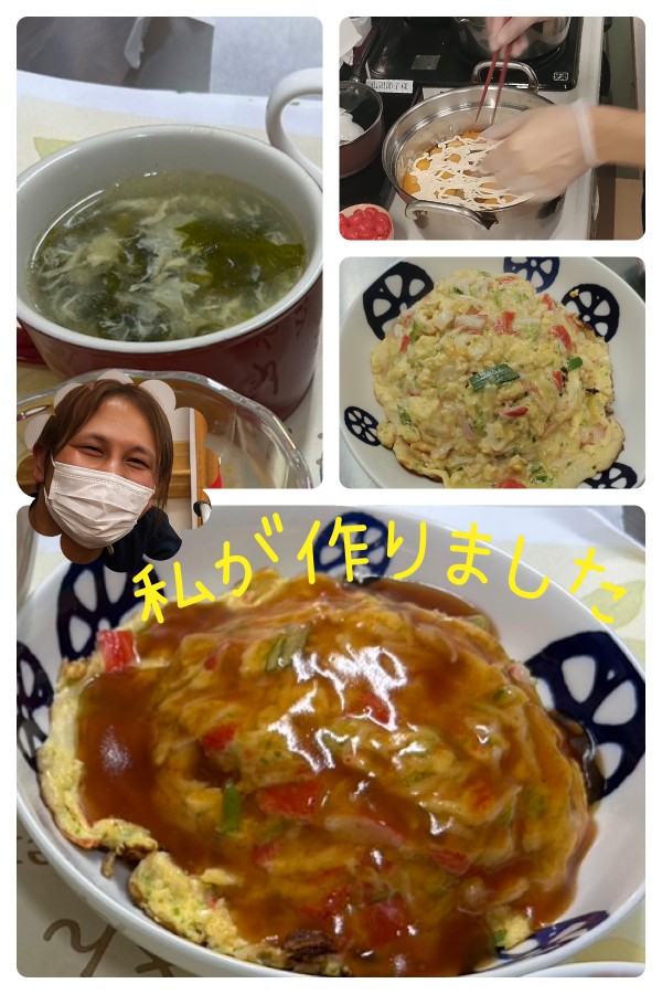 本日のお食事会は「中華ランチ」をご用意致しました^^!メインはふんわり卵にとろりとしたあんをかけた天津飯です(´~`)モグモグ