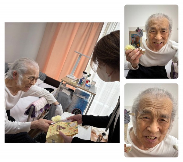 金子ホーム長からプレゼントを手渡しされると表情が優しくほころぶお父様方^^