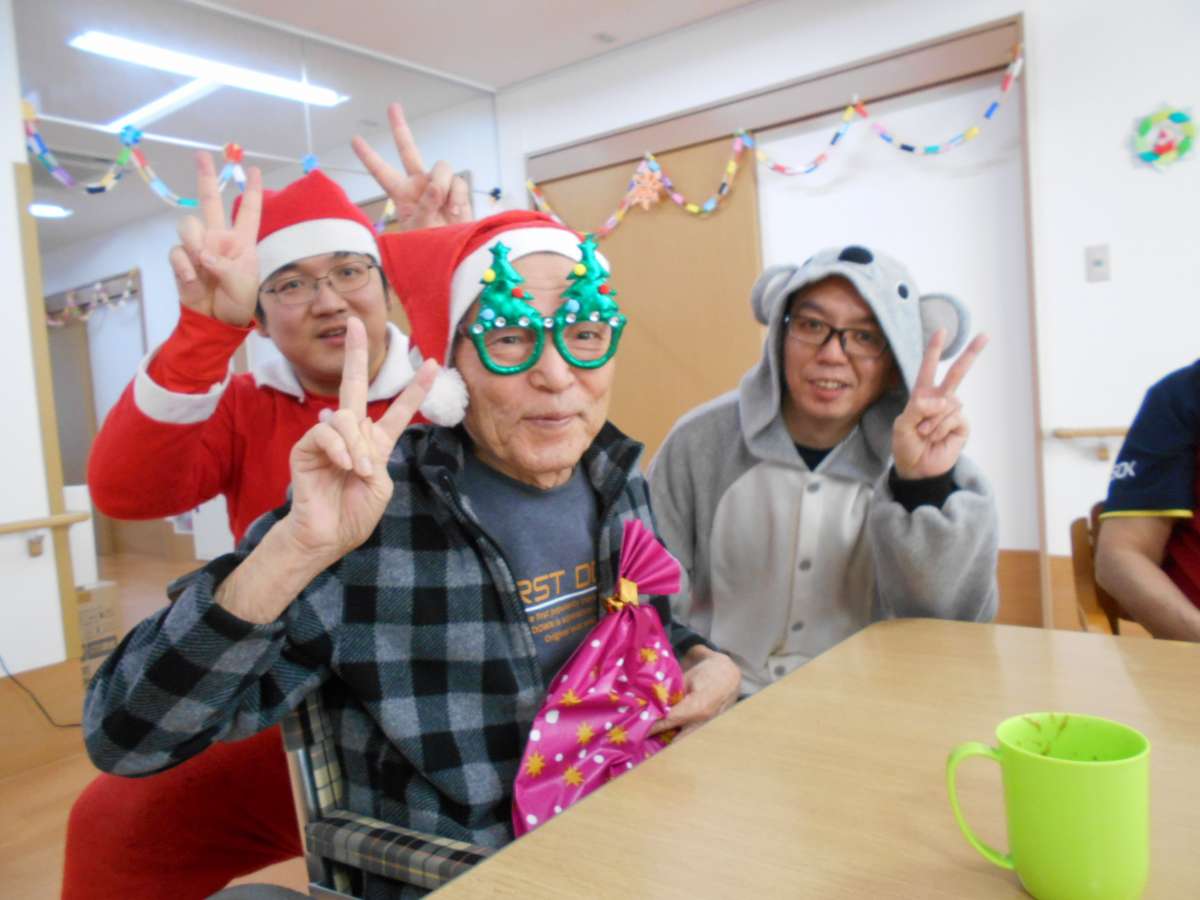 午前はサンタクロースの仮装をした職員が利用者の皆様にプレゼントをお配りしました。