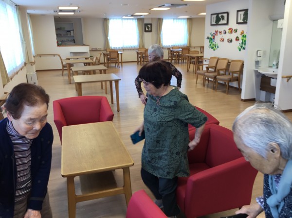 2階のソファーで毎日高齢の女子会ですが、今日は何やら話が盛り上がっていました。