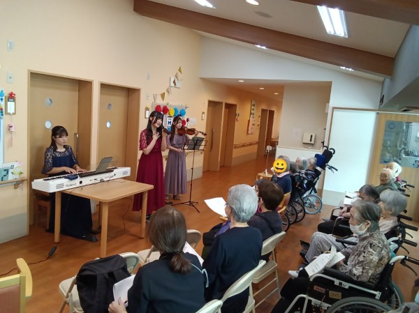 施設では、翌日にコンサートで歌った曲をご利用者様と一緒に歌いました。皆さんしっかりと覚えてました。