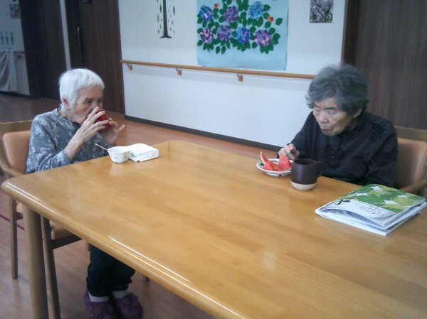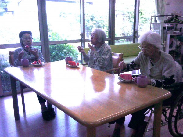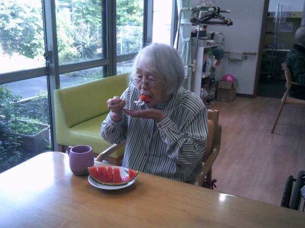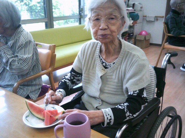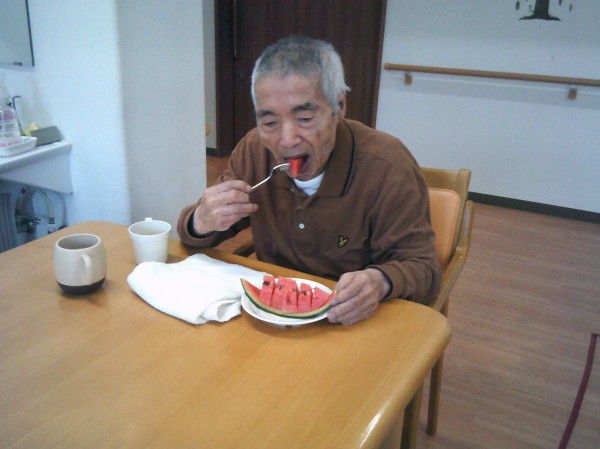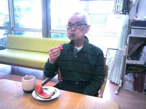 今日はご家族様からの差し入れ(スイカ)がありました。 おやつに召し上がられました。 そのご様子をお知らせいたします!!