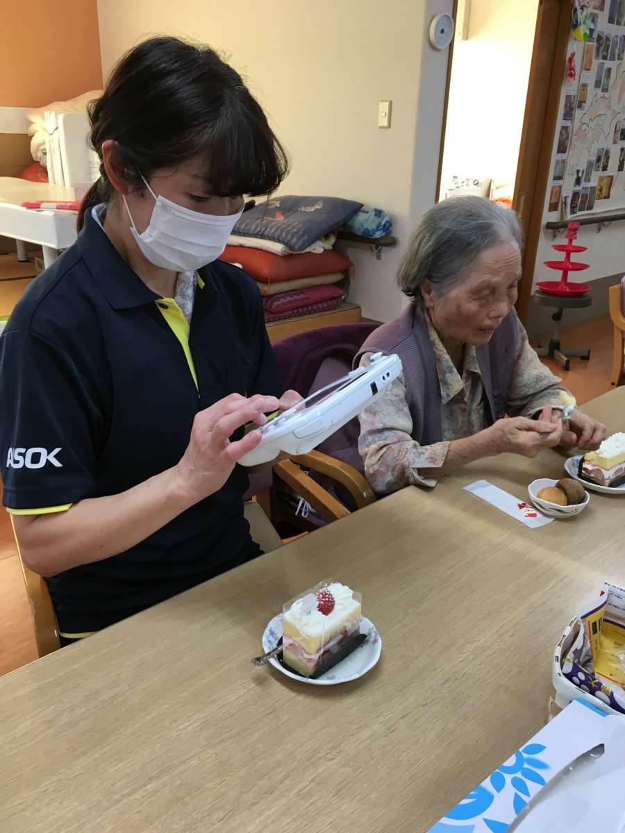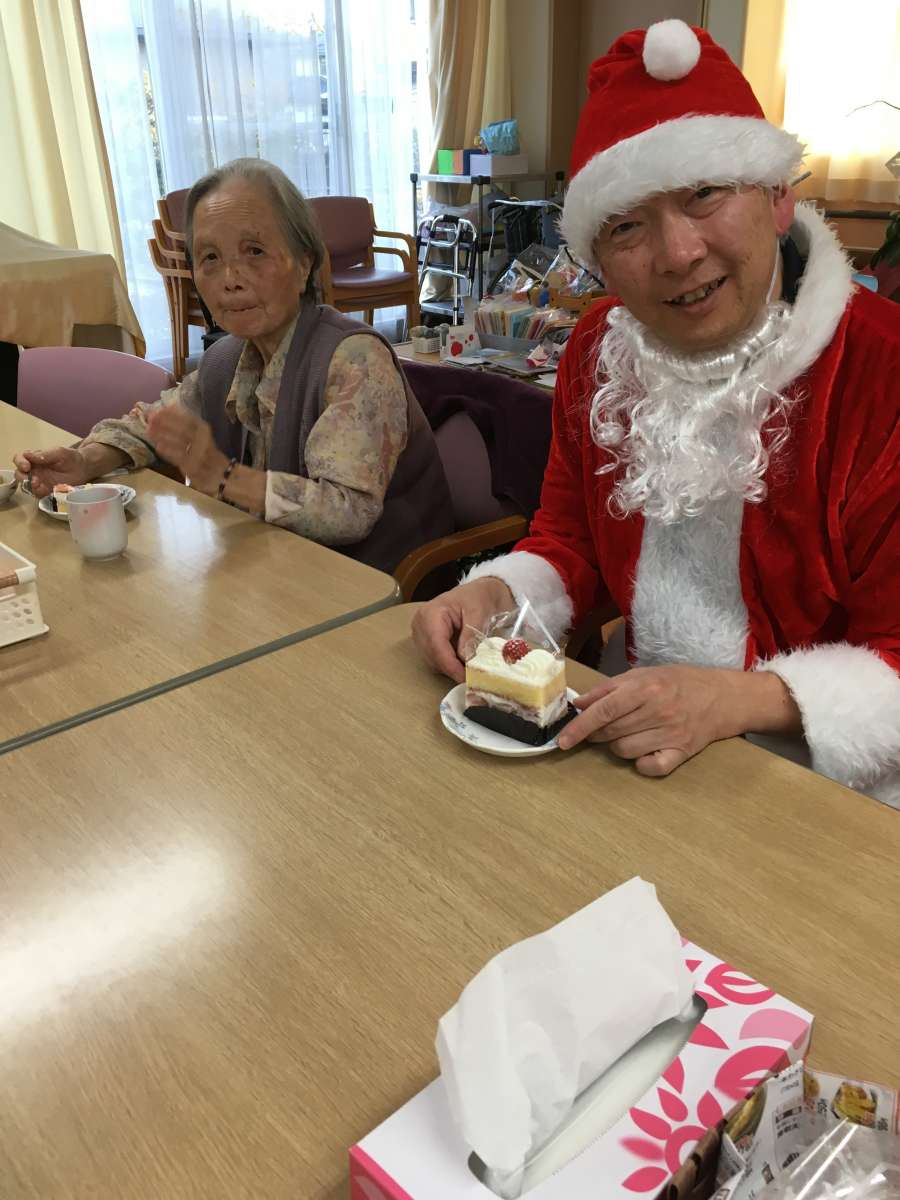 サンタさんもご利用者様にまざって、ケーキをお相伴。