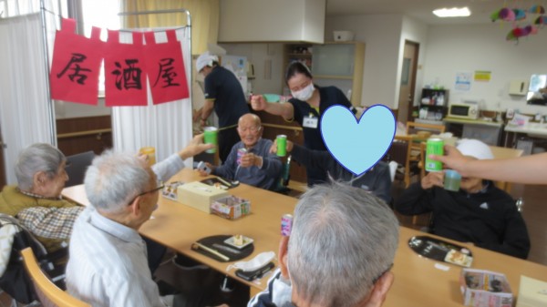 各フロアのお父様方で集まって、焼き鳥と冷奴を食べながら一杯やりましょう!というレクです(‘ω’)ノ(※飲み物は炭酸ジュースやお茶です)