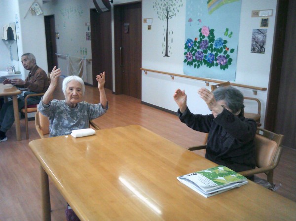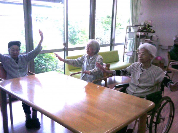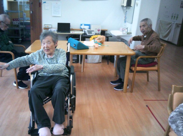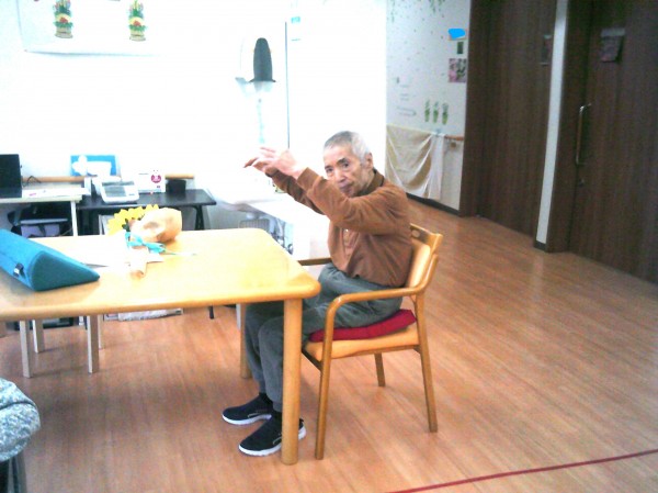 ALSOKあんしん体操のご様子です( ^ω^)・・・ 手がしっかりと上に上がっていますね(*^_^*)