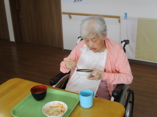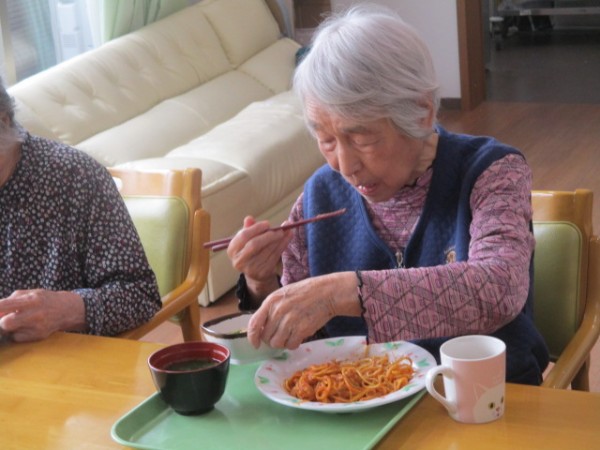 今日は2階で昼食会を行いました。 召し上がられているご様子をお知らせいたします!!