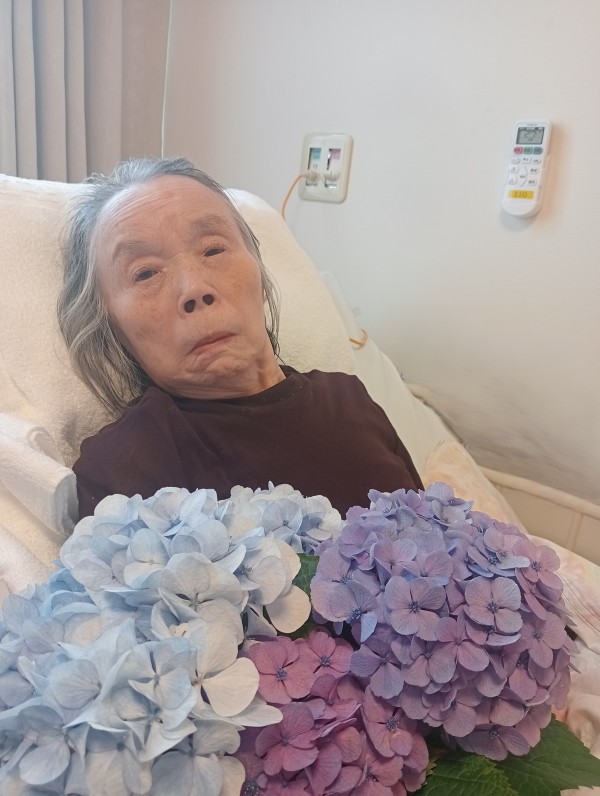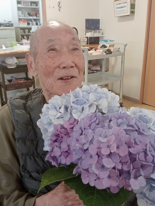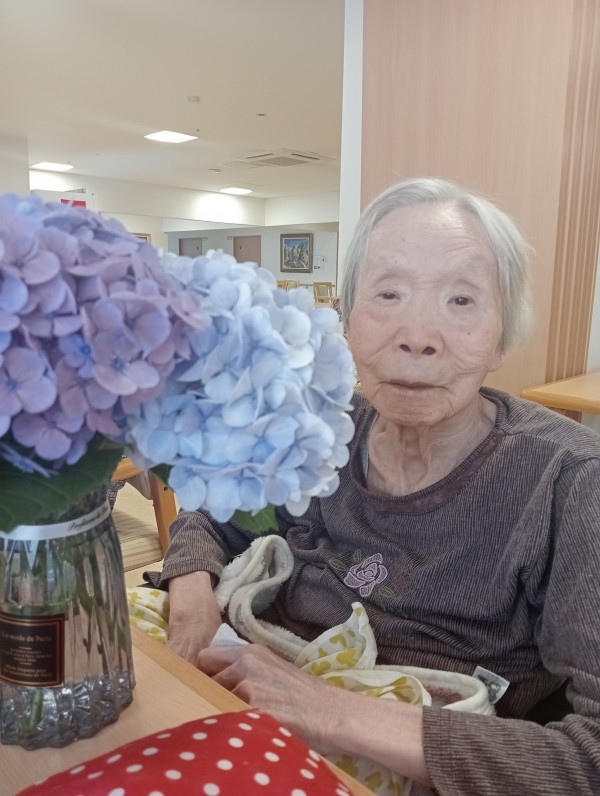 せっかくなので季節を感じていただこうと、あじさいを切って皆様のところに持っていくと。