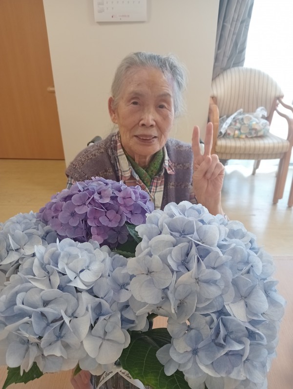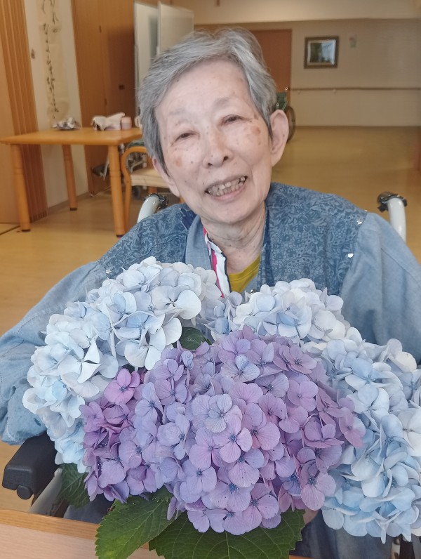 アミカの郷川口のお庭にアジサイがたくさん咲きました。