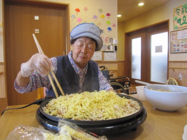 「お料理なら任せて!」と、アツアツの焼きそばを作ってくださりました。